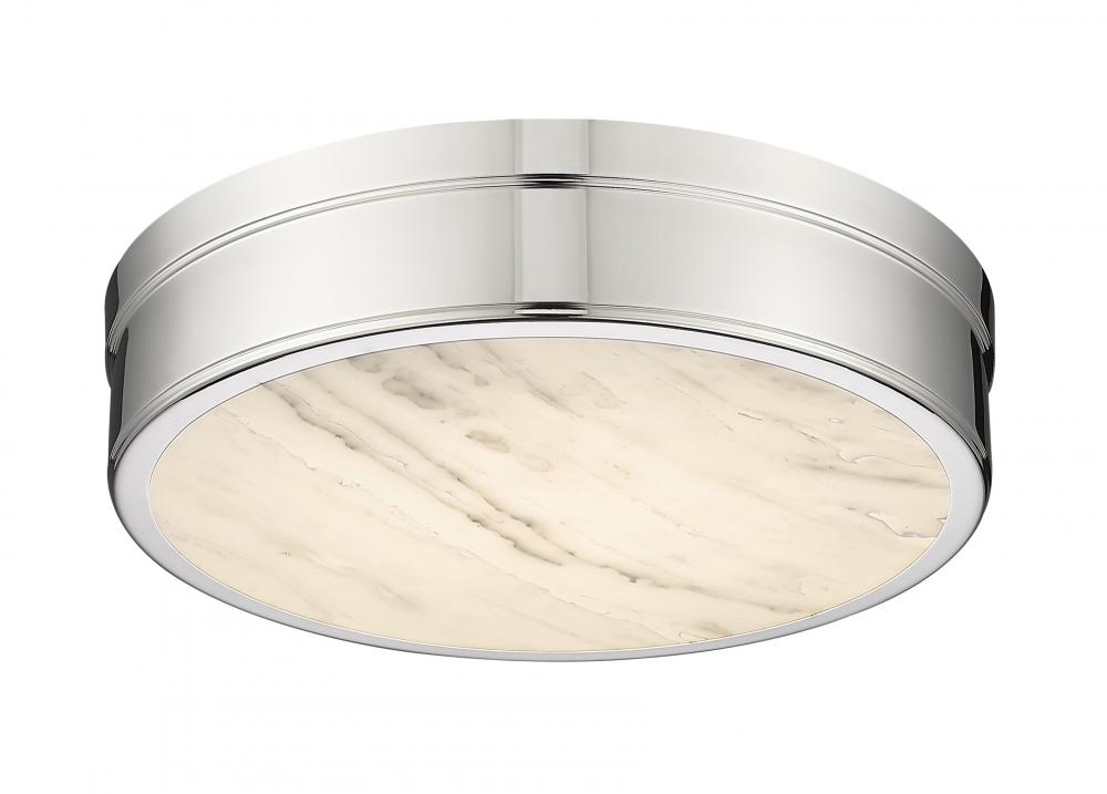 Delivering a smooth, relaxed aesthetic suited to a host of settings, this flush mount ceiling light from the Anders collection adapts to modern and transitional kitchens, living areas, and dining rooms. Clean design elements gleam with a circular polished nickel finish steel frame and canopy hugging a translucent alabaster diffuser that creates glowing light effects. This fixture?s banded metal design invokes an updated dose of industrial chic.
