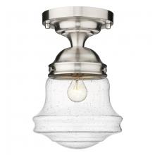 Upgrade home lighting with a modern one-light flush mount ceiling light with vintage inspirations. Borrowing from Mid-Century motifs, it boasts matte opal schoolhouse glass to complement a decorative mounting in a versatile brushed nickel finish. Perfect for a walk-in closet, powder, room, bedroom, and beyond.