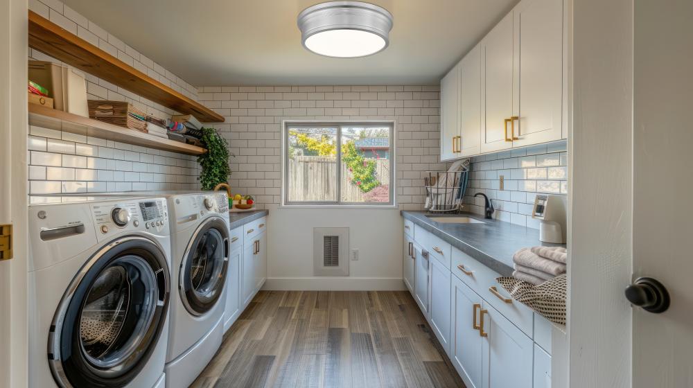 Scaled for busier gathering spots, this brushed nickel transitional LED flush mount ceiling light carries its classic trim in a slightly broader ring that suits kitchens, living rooms, and multipurpose family spaces. The larger lens sends light confidently into corners and across work surfaces, supporting homework at the table, conversations on the sofa, and weekend cooking sessions. Because the profile stays close to the ceiling, this piece keeps sightlines open to windows and art, and the familiar metal finish lets it blend gracefully with both stainless and satin hardware.
