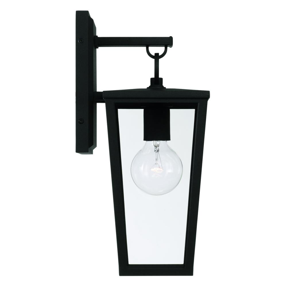 6.25"W x 15.5"H 1-Light Outdoor Wall Lantern in Black with Clear Glass Panels