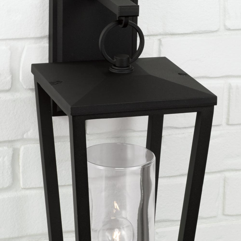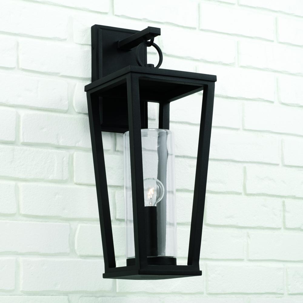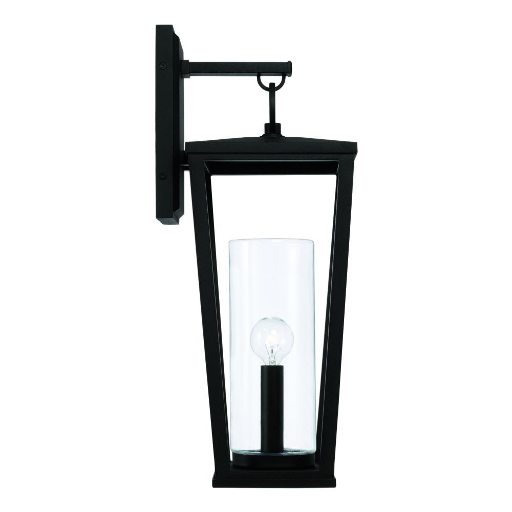 7.25"W x 20"H 1-Light Outdoor Wall Lantern in Black with Clear Glass Cylinder