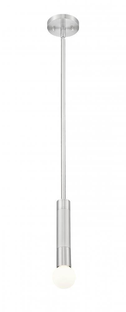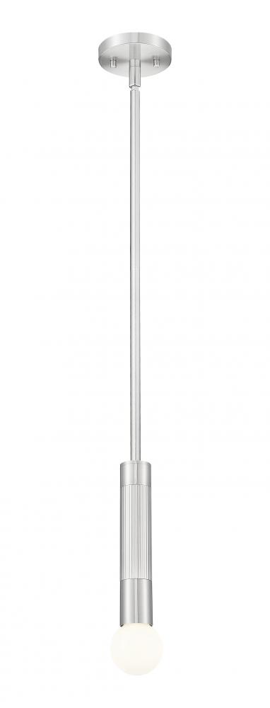 Chic brushed nickel creates gleaming allure for a modern pendant light. Its a perfect solution for small spaces, and looks beautiful grouped to create a larger lighting installation over a kitchen island or elsewhere in your home. An elongated tube and petite light enhance its streamlined silhouette with graceful aesthetics and lovely ambiance.