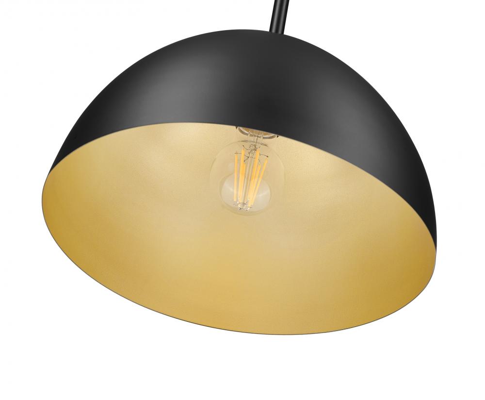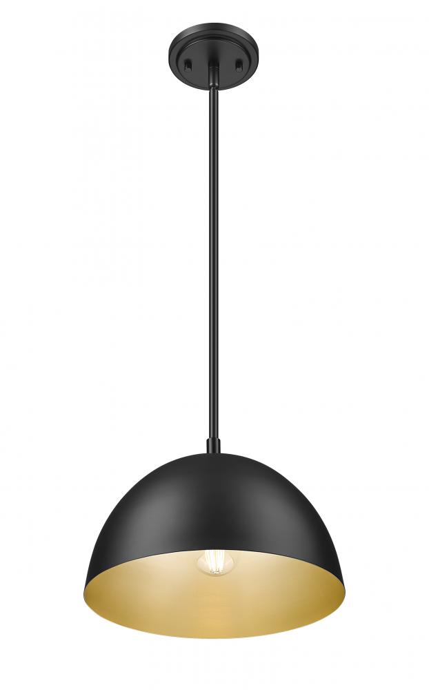 Nothing says classic like a dome silhouette in an interior light fixture, and this simple yet stylish one-light pendant delivers timeless style. Bold matte black steel construction forms a sleek dome shade with lush gold lining, and conventional rod suspension fitting a perfect shape. This timeless fixture is dimmable, creating varied light levels to fulfill night and day needs.