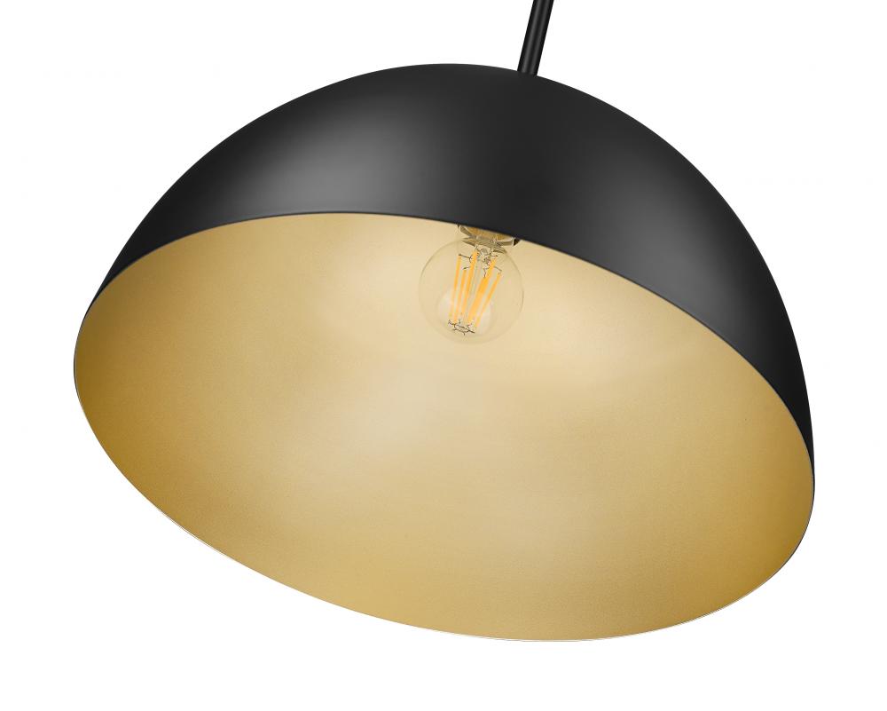 The classic dome motif shows up in a timeless one-light pendant, perfect for adding a calming look with hints of farmhouse and industrial style. Embrace the bold matte black finish of a steel constructed shade lined in gold, with a slight sheen enhancing its finish. Illuminate kitchens, dining rooms, and foyers with this fixture adding dimming features to change lighting levels.