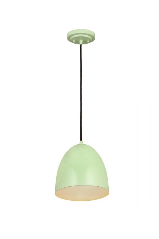 Solve lighting challenges in compact spaces with a cheeky, Mid-Century Modern style fixture that becomes part of a design scheme. The Z Studio Dome pendant brings targeted lighting to casual nooks and reading spaces, bedrooms and kitchens. With a farmhouse feel, this versatile dome-style pendant offers a soft mint finish iron shade and matching canopy, as a charming braided black cord adds finishing touches.