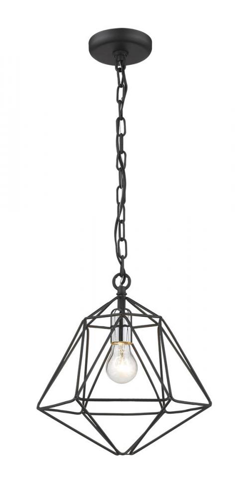 Fully energizing in its sleek geometric silhouette, this one-light mini-pendant delivers sophistication and contemporary verve in a modern nook or reading space. Follow the angles of an open cage-like frame fashioned from two-tone finish metal in Matte Black and Chrome, and a stylish symmetrical aesthetic.