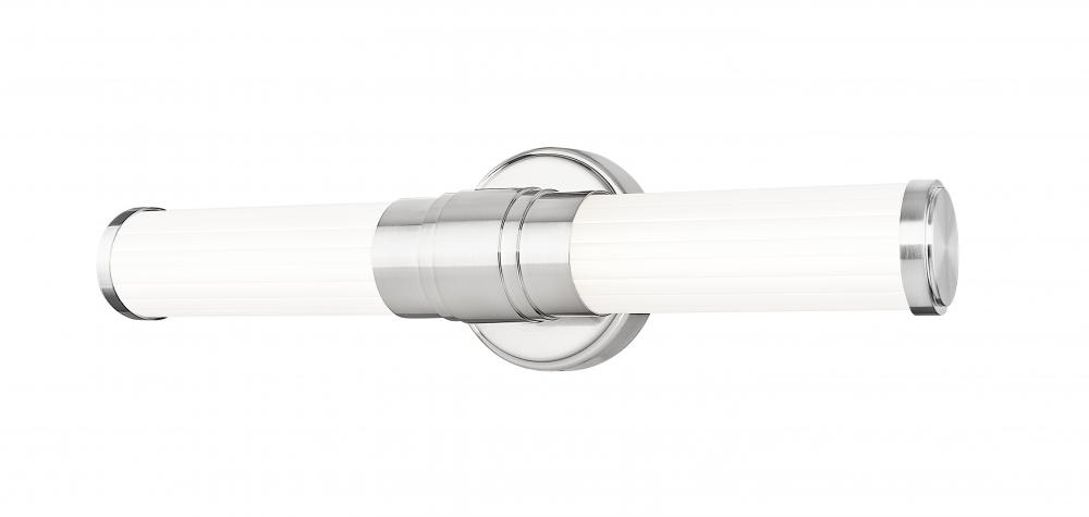 Slender ribbed glass diffusers and a stepped design on the metal arm bring a modern flair to the Warwick bath collection. These fixtures are equipped with the latest energy-saving LED technology, dimmable, light color selectable (5 choices), and a 5-year