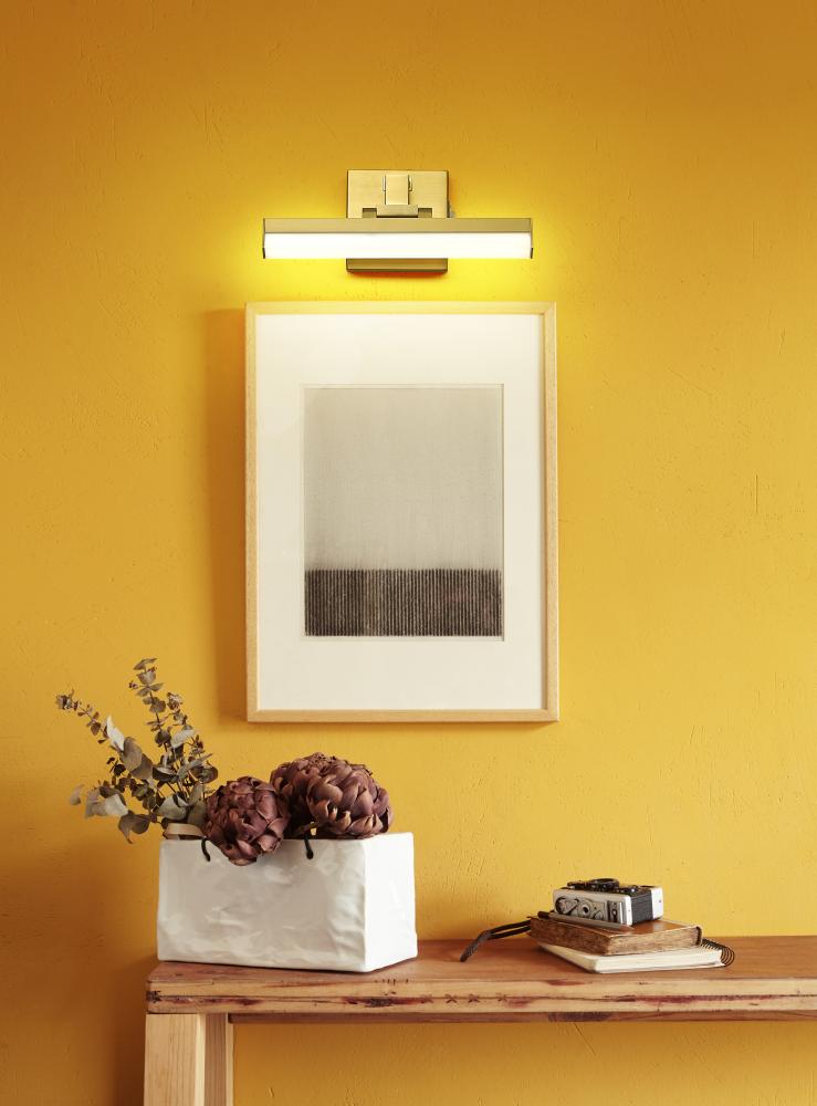 A fresh take on modern and transitional takes blends industrial and contemporary motifs in a one-light vanity light with plenty of versatility. Sculptural elements maintain symmetry and clean lines in a fixture with a modern gold finish aluminum frame with a frosted plastic diffuser, emitting dimmable lighting with options for perfecting the level of ideal white color.