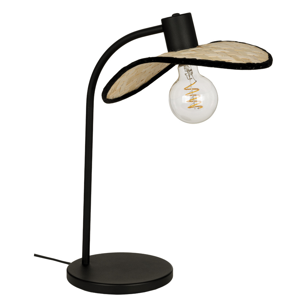 The MARYWELL table lamp features a bamboo shade with a black metal frame. This table lamp is a versatile and stylish lighting solution that complements any décor.