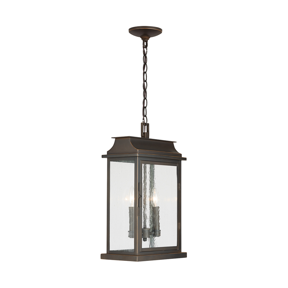 Our Bolton 2-light hanging lantern brightens your porch or covered deck with two candle-style lights encased in textured antique glass. It's a refined addition that adds updated English style to your home in our timeless Old Bronze finish.