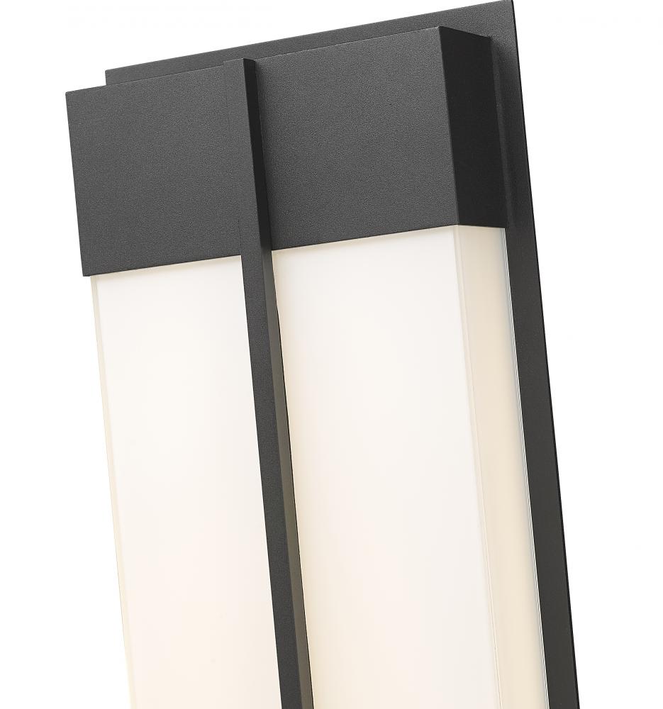 Simplicity and modernism go hand in hand in a chic exterior light fixture with a timeless personality. This two-light outdoor wall light offers a lantern-inspired design blending Coastal black painted metal and a silk white flat panel shade. The contrast adds instant sophistication and the design is low-key yet powerful.