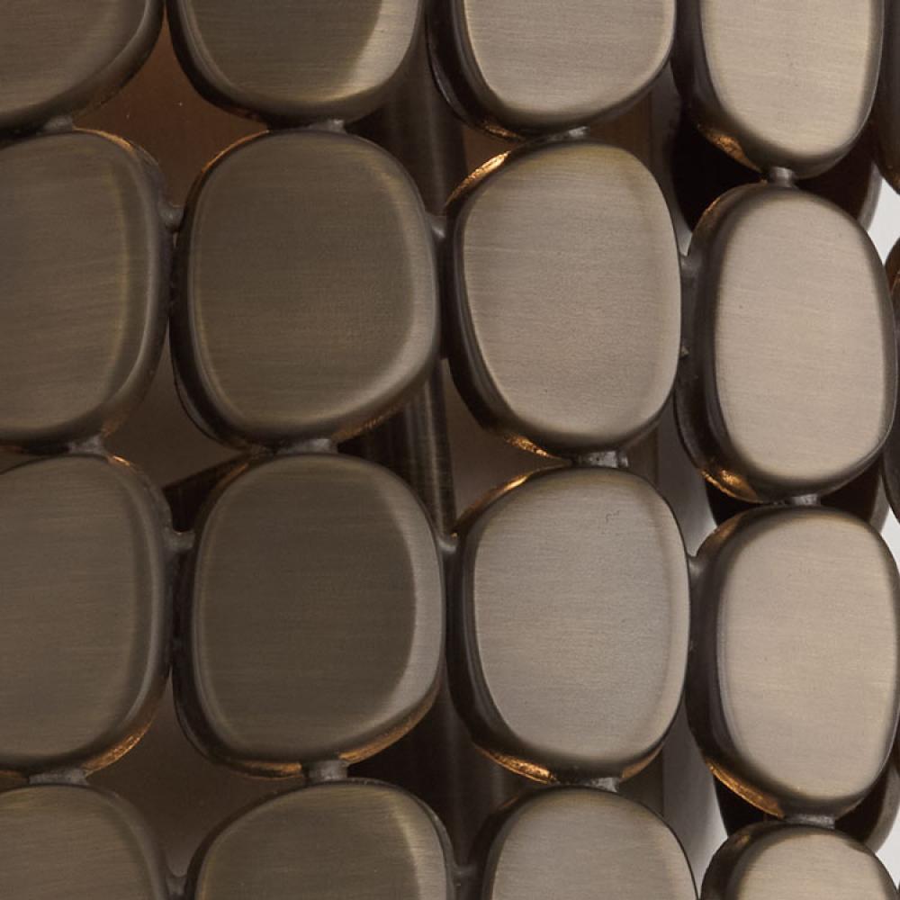 DETAILS: Intricately placed medallions shimmer in the light, while the Dark Brass finish brings an earthy elegance.