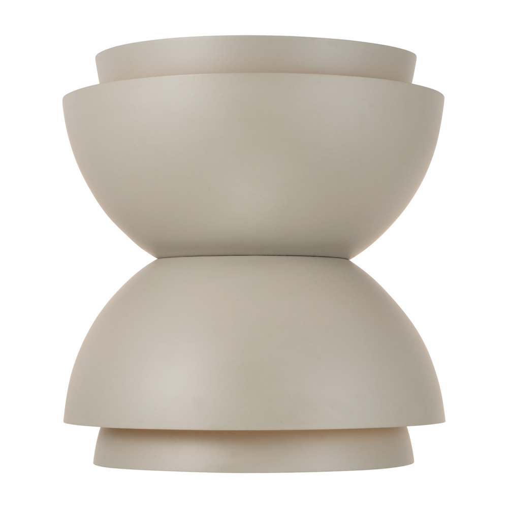 DETAILS: Finished in a serene matte Taupe hue, the nestled metal domes offer beautiful, tiered illumination from top and bottom.