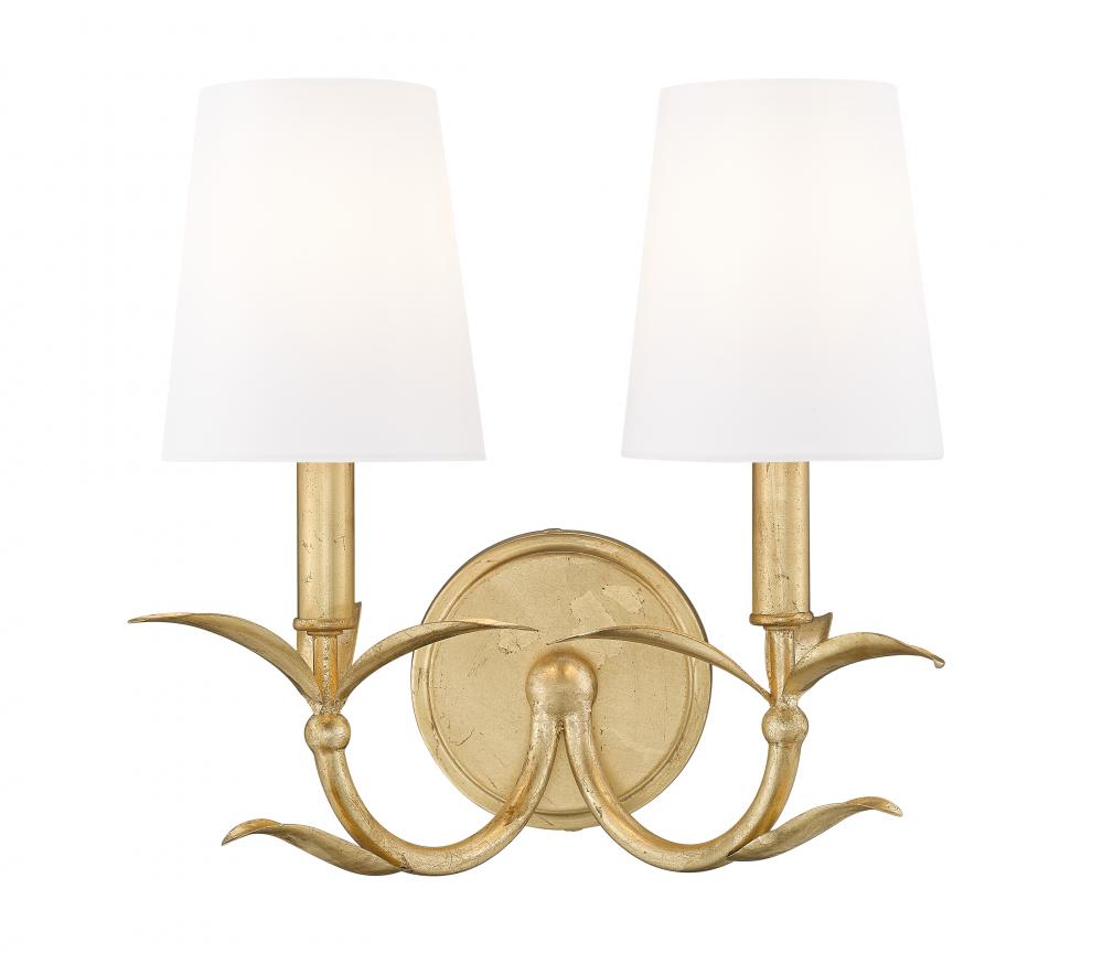 Side-by-side curved arms with delicately shaped fronds offer a captivating look of art and botanicals in a two-light wall sconce bringing an extraordinary sense of elegance to living rooms, bedrooms, and hallways. Admire the warm gold leaf finish steel construction of a dual-light fixture with torch sleeves and candelabra bases, and take advantage of mood-altering changeable light levels thanks to dimming features.