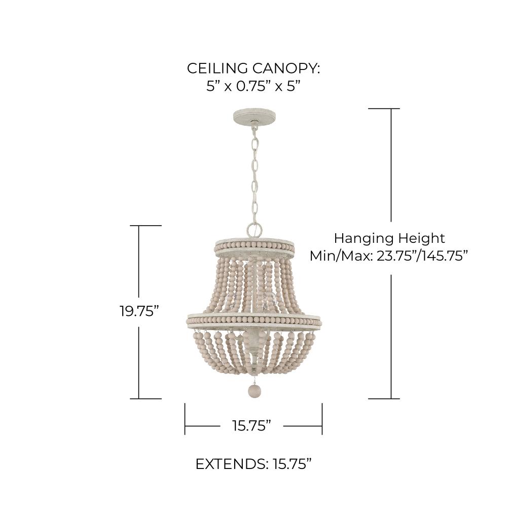 DIMENSIONS: Overall: 15.75"W x 19.75"H; Adjustable Hanging Height: 23.25" - 145.75"; Includes 120" Chain; 180" Wire