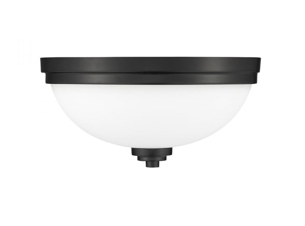 Make lighting work as a d?cor staple in a room devoted to easy living and solid taste from floor to ceiling. With a Matte Black finish metal mount and domed Matte Opal glass shade, this three-light flush mount ceiling light illuminates a larger living space as it completes a custom design scheme that works in modern or transitional settings.