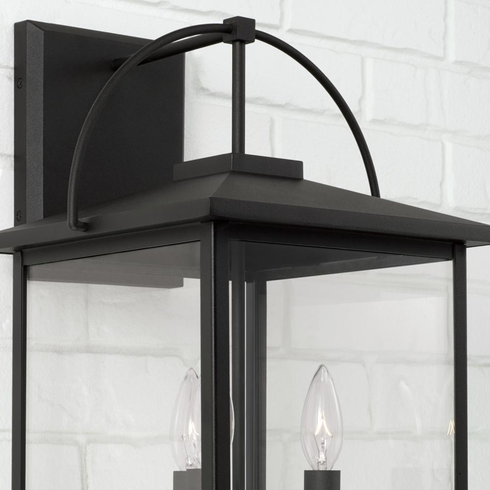 11.5"W x 19.75"H 3-Light Outdoor Wall Lantern in Black with Clear Glass