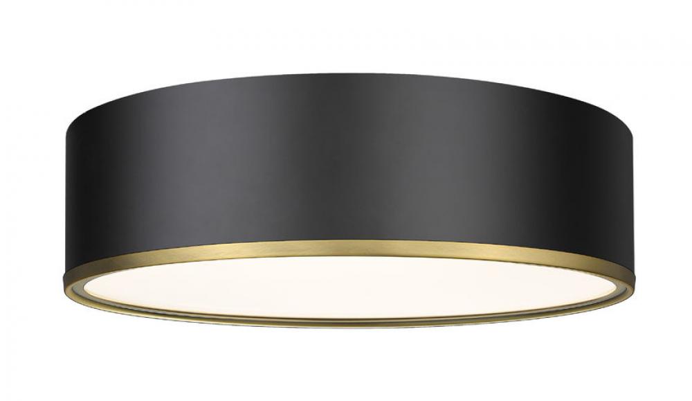 Its easy to make a contemporary statement with this four-light flush mount fixture. Four bulbs make for maximized illumination in your space. The matte black shade is designed from steel with an eye-catching rubbed brass trim, offering the perfect pick-me-up for small foyers, hallways, home offices, and more.