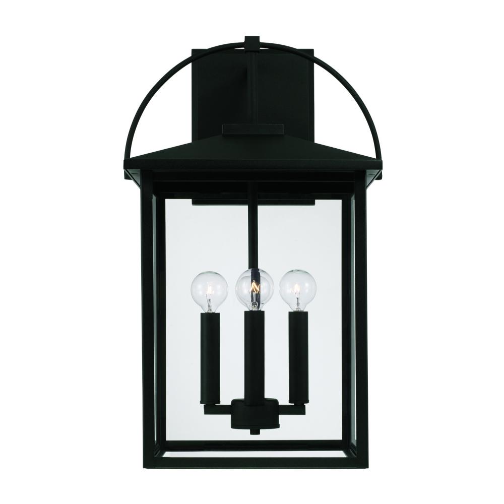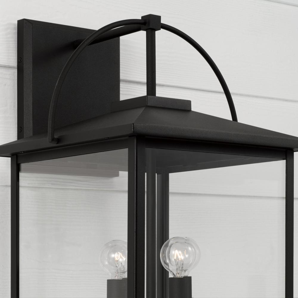 13.25"W x 22.75"H 4-Light Outdoor Wall Lantern in Black with Clear Glass