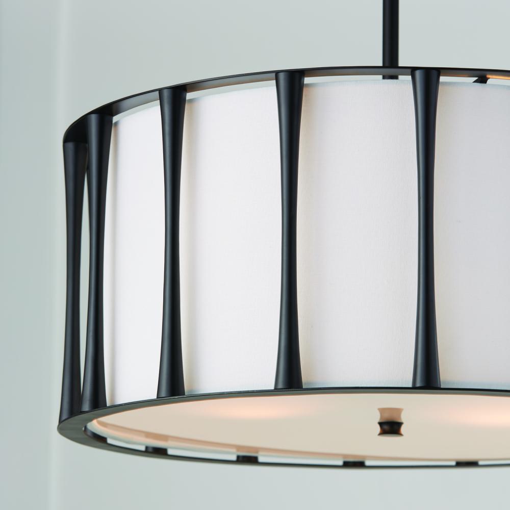 24.5"W x 11"H 4-Light Pendant in Matte Black with White Fabric Shade