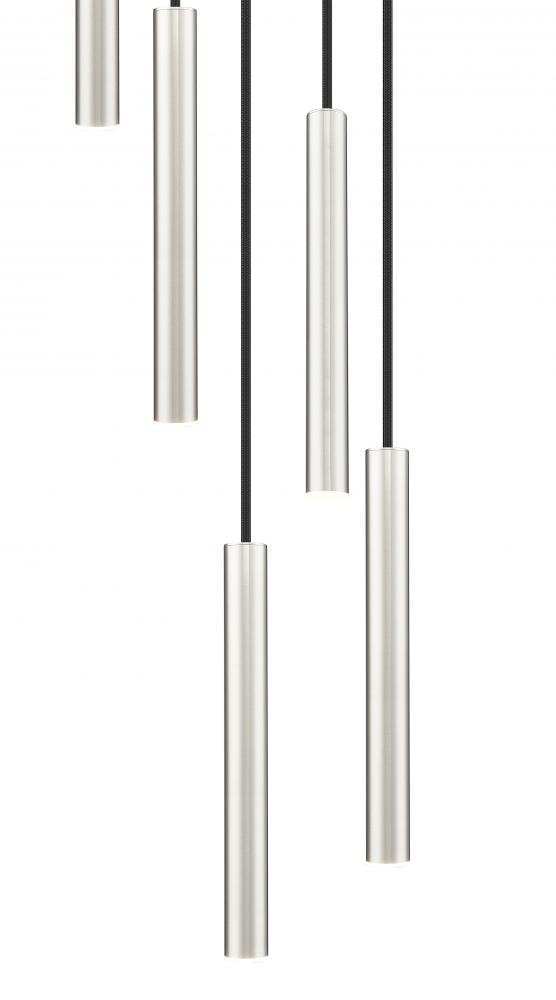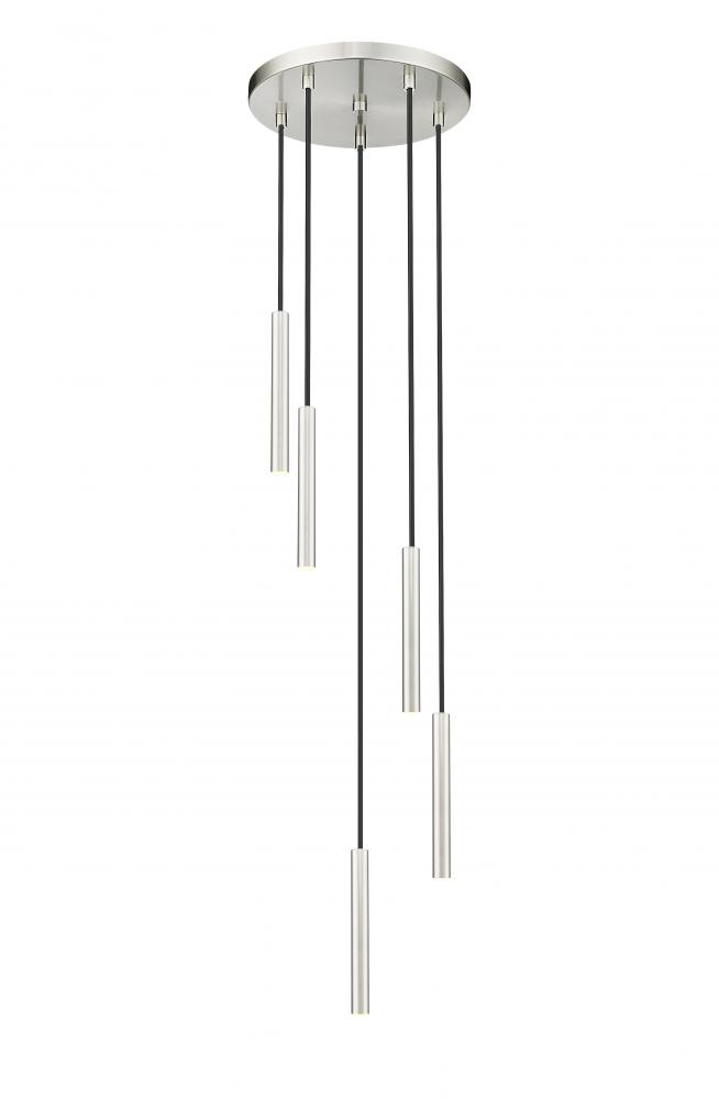 A staggered spiral silhouette brings artistry and elegance to this modern five-light chandelier. Its a perfect choice for a living or dining room, creating sculptural elegance with simple, familiar shapes that bring inviting flair. A brushed nickel finish pairs with integrated, dimmable LED lights, offering an inviting ambiance no matter the occasion.