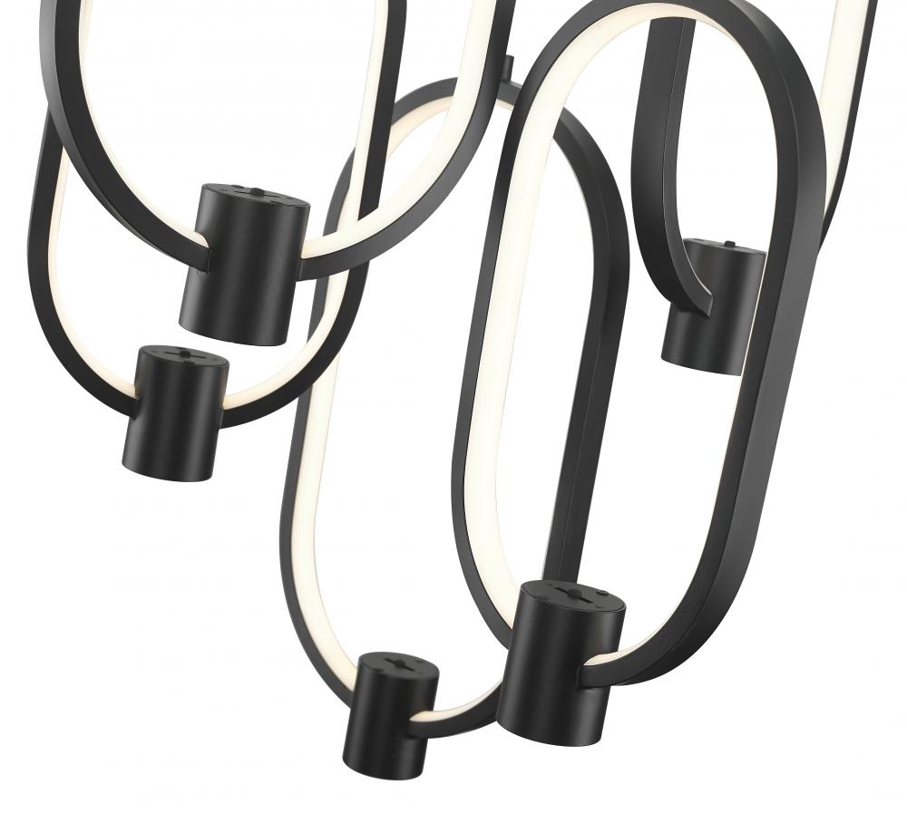 The innovative design of the Saros collection provides light color selectable, dimmable LED illumination along the elongated acrylic loop design as well as from individual downlights for an unparalleled amount of light. The illuminated loops can be ordere