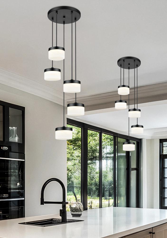 Gathered around a round canopy, this matte black 5-light LED chandelier arranges its clouded glass shades at varied heights to create a playful, layered silhouette over the space. The clustered composition suits smaller dining areas, lounge corners, or compact foyers where you want notable personality without visual clutter. Bright, adjustable LEDs keep the scene functional for board games and conversation, then mellow gracefully when it is time to unwind.