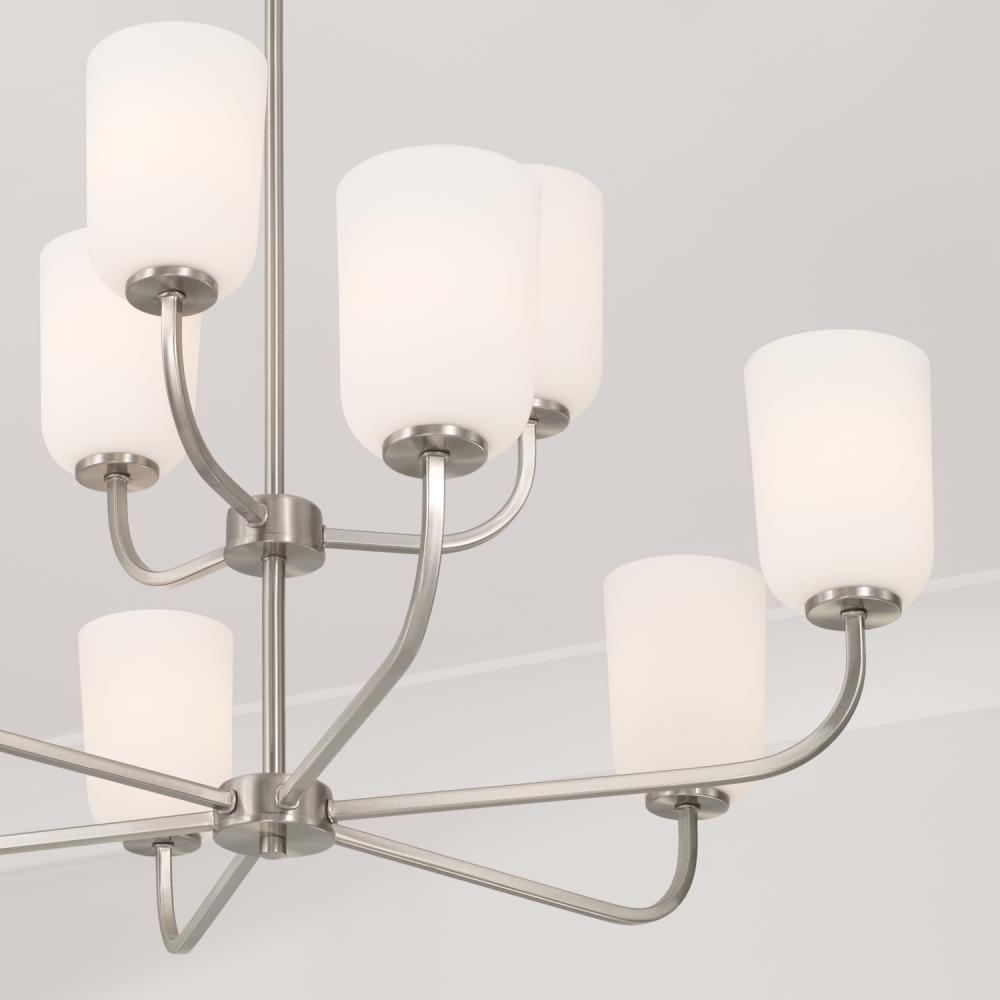 BULBS: Designed to be dimmable and LED/CFL/Incandescent bulb compatible, this fixture uses 9 - 100 Watt (max) E26 Medium base bulbs (not included). It's shown here with an A15 lamp.