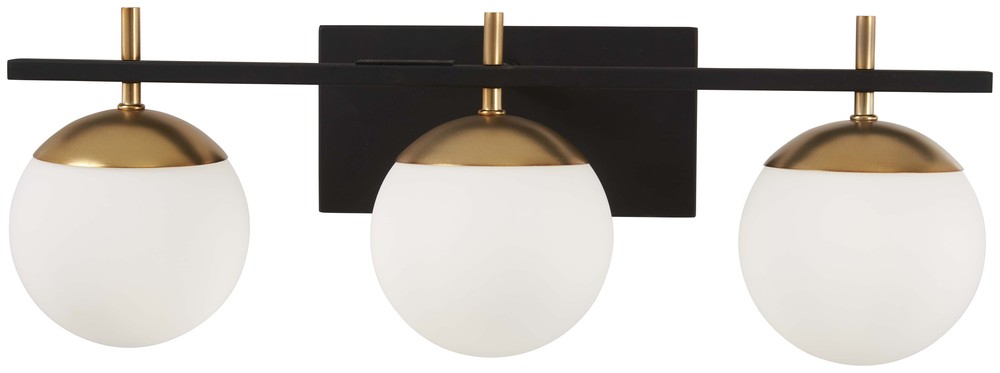 3 Light Bath in Weathered Black Finish with Autumn Gold Accents with Etched Opal Glass