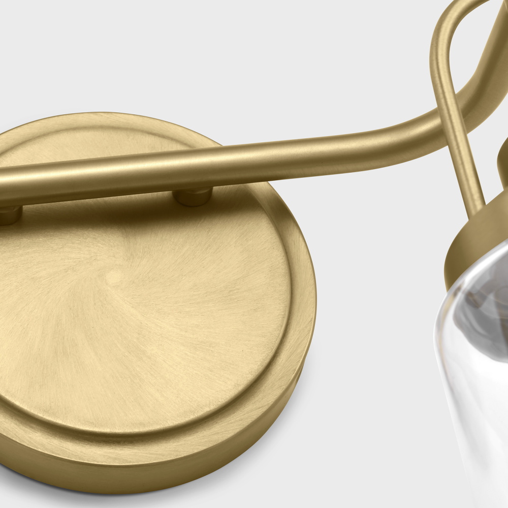 Crafted with Steel in a Satin Brass finish with clear glass shades