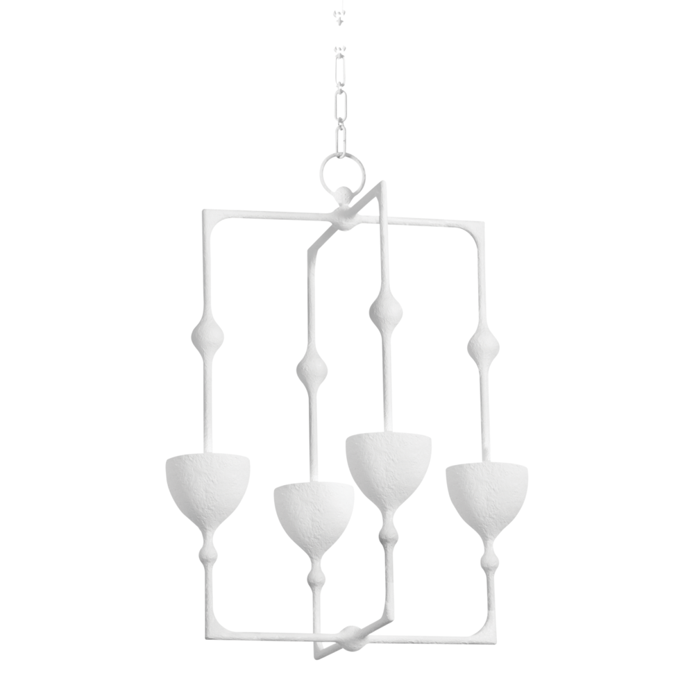 Drawing inspiration from the geometric patterns of Turkish tiles, this LED fixture merges high-concept design with otherworldly beauty. Long biomorphic stems support inverted bowl shades that direct light upwards. Available as a sconce or lantern in two sizes with the choice of a fresh Gesso White or luxurious Vintage Gold Leaf finish.