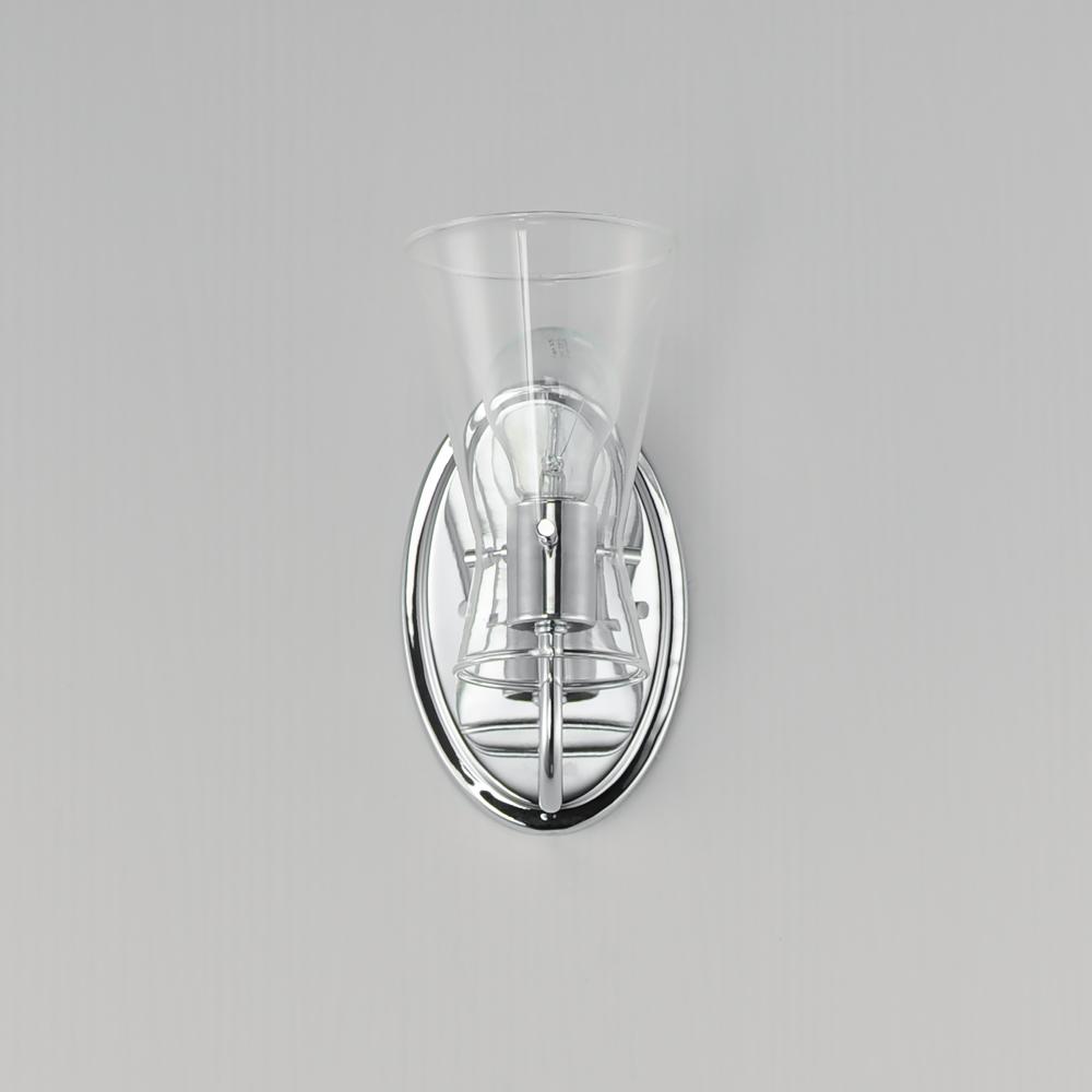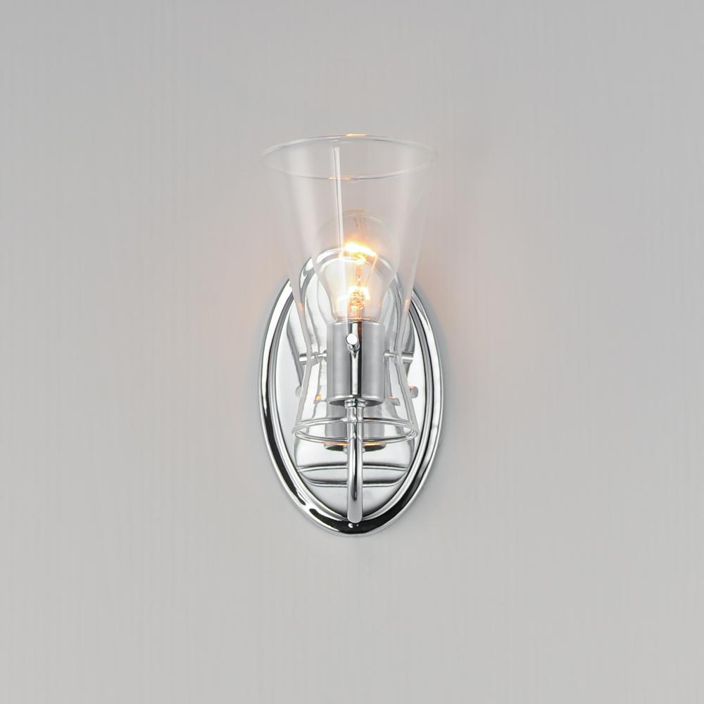 Suspended by three pin connections, the sharp silhouette of Ava's angular glass provides a designer look to enhance your bathroom design. Using Clear glass and a variety of complementary metal finishes the sconces are available in Black, Polished Chrom
