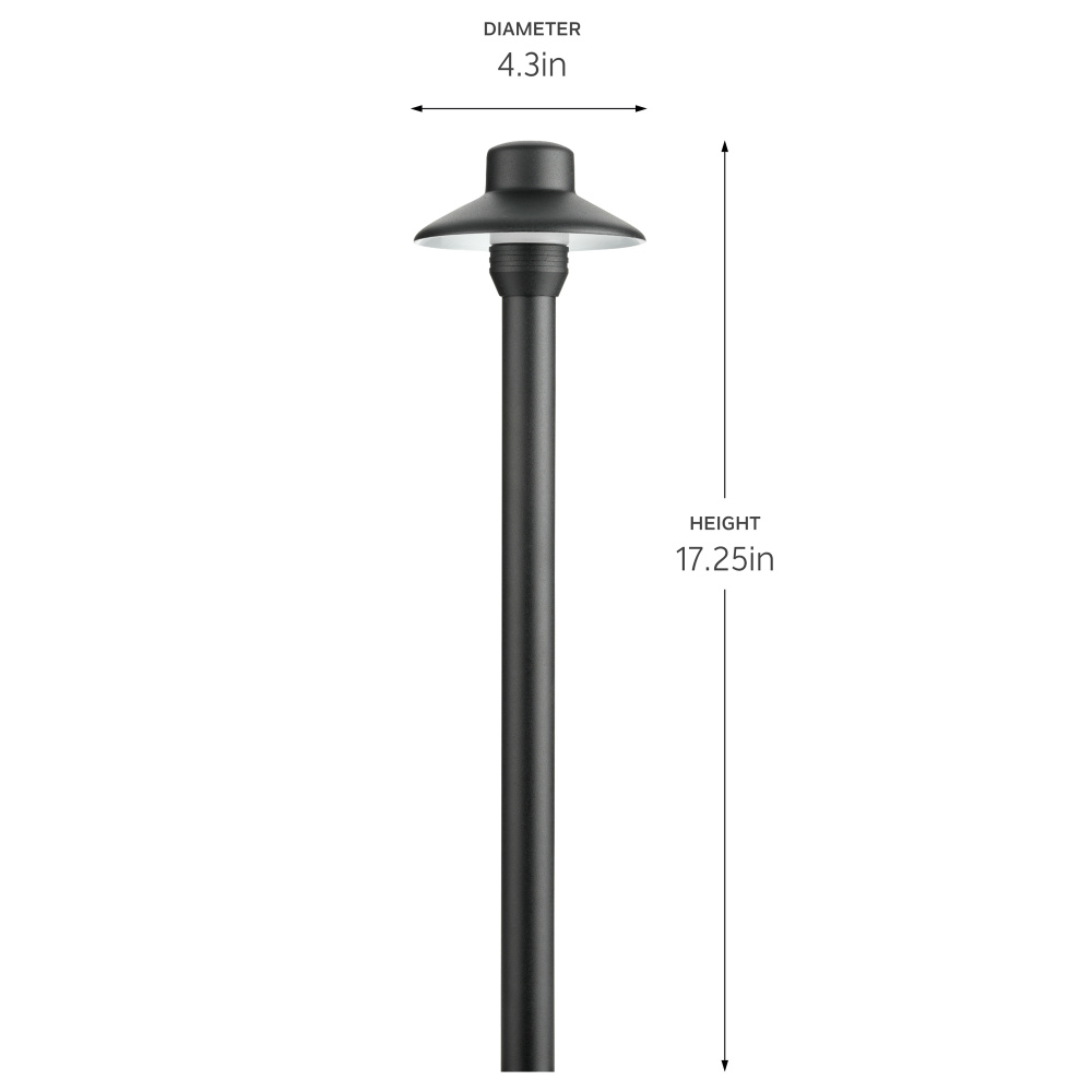 The 12V Brass 3" Dome Small Hat Path Light in Black Brass (drop-in) illuminates sidewalks, stone pathways and lawn areas while adding a pool of light to highlight boulders and low growing annuals or perennial plant beds. Customize color temperature (CCT), wattage, and lumen output based on the LED bulb selection. These drop-in, low voltage fixtures are compatible with a any T5 wedge Professional and Contractor Series LED Lamps and are a great economical choice for any design application.