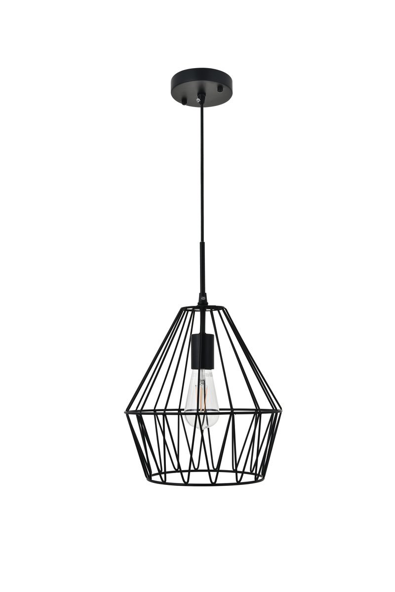 Hanging black finish pendant with a contemporary open geometric shade