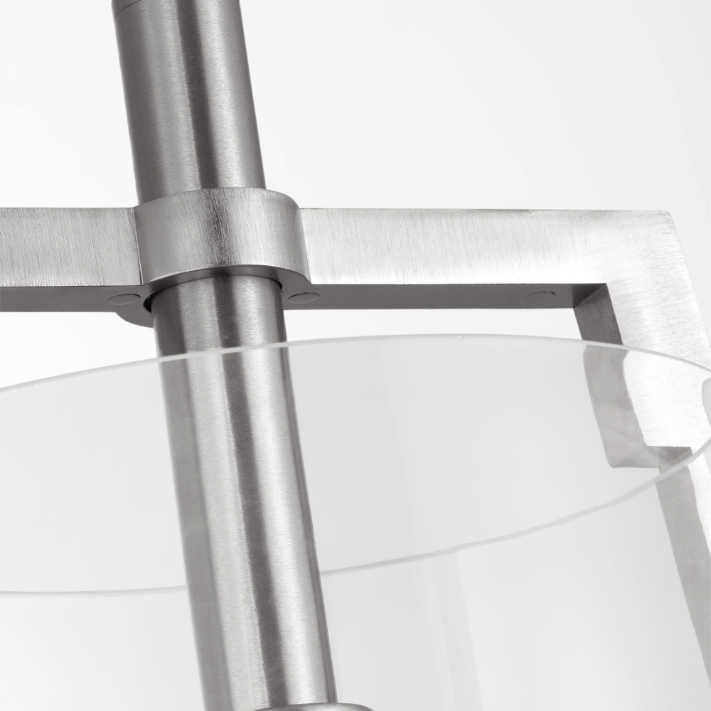 Add a bright burst of light where you need it most with the stylish Drew & Jonathan Crofton one light pendant, featuring a sleek colonial crackle clear glass shade. Made to coordinate across a broader range of bath hardware and design styles, the Crofton is available in four popular finishes, Brushed Steel, Chrome, Midnight Black, and Satin Brass. This light looks great on its own or installed above a bathroom vanity, and the glass shade makes it ideal for filament bulbs. This fixture may be mounted in the up or down position, and is cETL listed for damp locations, making it the perfect lighting solution for any space.