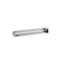 Clear ribbed glass encases a tube of opal white acrylic evenly illuminated by LED. The ends of the glass shade are fitted with knurled cylinder forms that suspend the sconces from their mounting plates. Dual mounted options are available for this series al