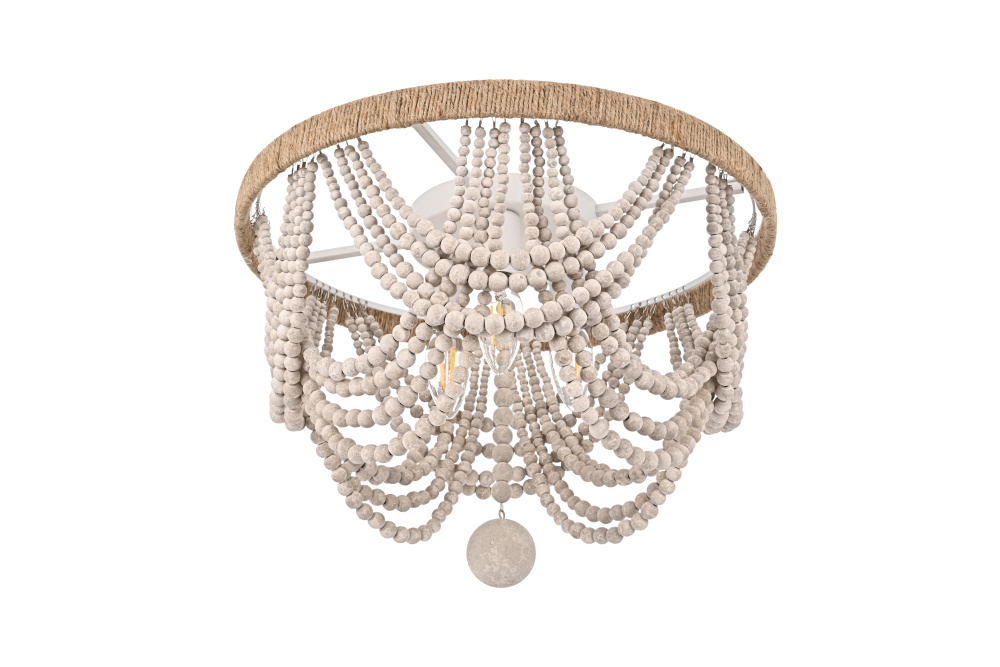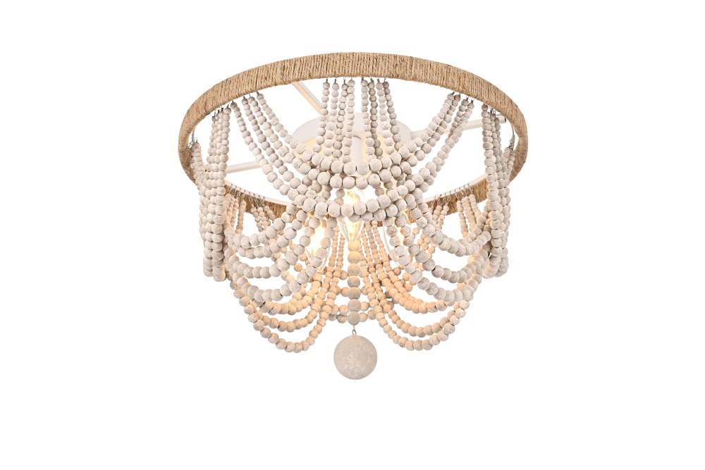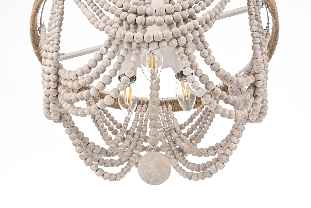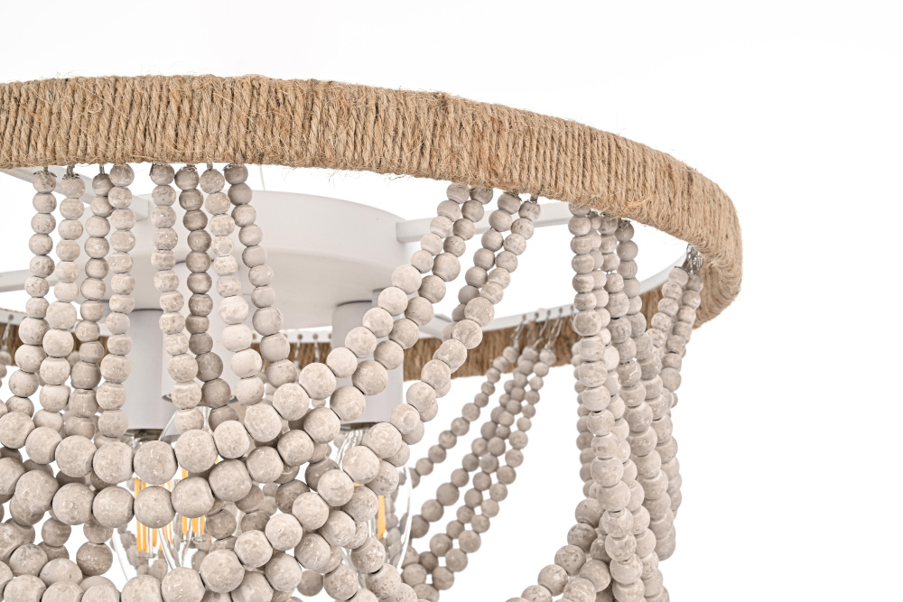 Blend of iron frame, textured rope detail, and wooden beads offers rich material depth.