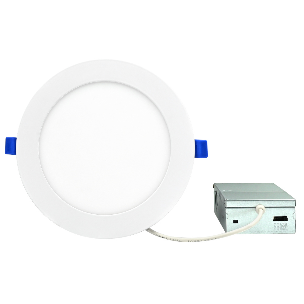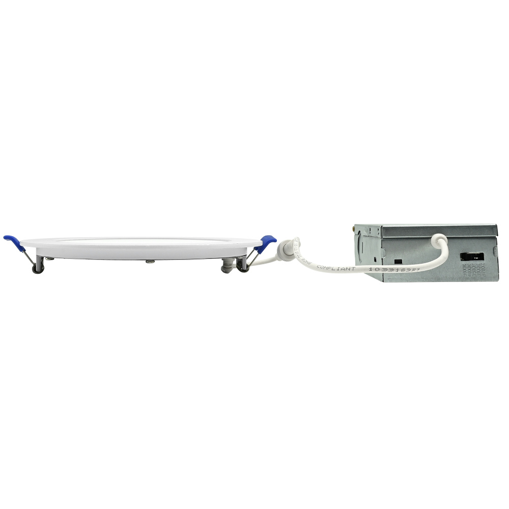 Brighten your space with the 6" Ultra Slim LED Downlight—crafted for effortless installation and high-performance lighting. Featuring edge-lit technology, this fixture delivers smooth, glare-free illumination with no dark spots and instant-on responsiveness. No recessed housing or junction box required, making it perfect for quick upgrades. With TRIAC dimming down to 10%, I.C. rating for direct insulation contact, and wet location suitability (indoor only), it’s as versatile as it is efficient. Enjoy over 50,000 hours of reliable light and customize your ambiance with 5 field-selectable color temperatures ranging from warm 2700K to crisp 5000K. Plenum-rated FT6 cable included for added safety and compliance.