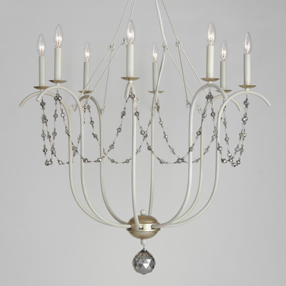 This series draws inspiration from regal agrarian manors, delivering a statement in its scale and sophisticated finishes. Designed in operatic proportions, the bottom chandelier assembly features swollen curves hand painted in a choice of Ecru White or Gol