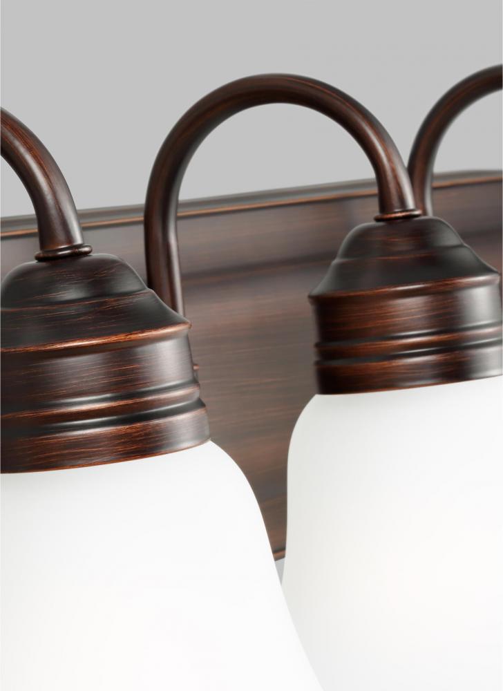 The Gladstone four light vanity fixture in bronze offers shadow-free lighting in your powder room, spa, or master bath room. Moving beyond traditional styling, the Gladstone bath collection by is all about today's transitional, comfortable lifestyles. A perfect example of less is more and controlled design allows the understated curves and bell shaped glass to be the statement. Offered in Antique Brushed Nickel and Chrome finishes with Satin Etched glass, and Heirloom Bronze finish with Smoky Amber Glass. The assortment includes one-light, two-light, three-light, four-light, five-light and six-light wall/bath fixtures. Both incandescent lamping and ENERGY STAR-qualified LED lamping are available. All fixtures are California Title 24 compliant.