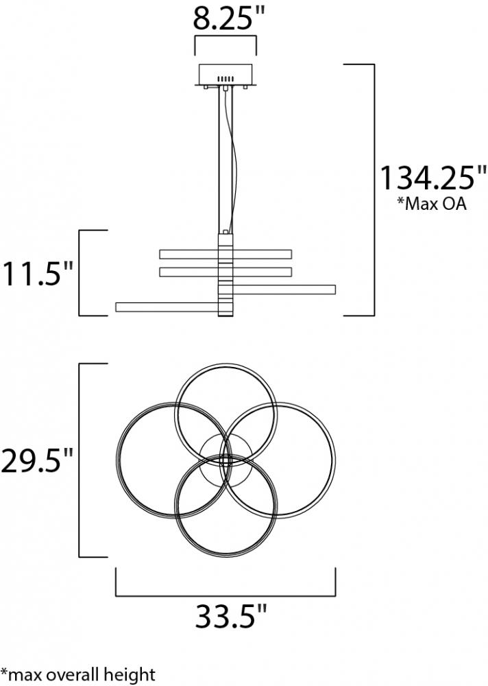 Rings of various sizes finished in Black are supported from a column of soft Gold. This European classic is a soft contemporary design which works in today's home decor.