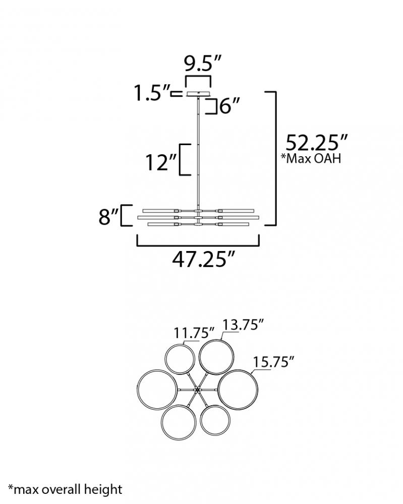 Bulbs: (6) x 15 Watt DC Integrated