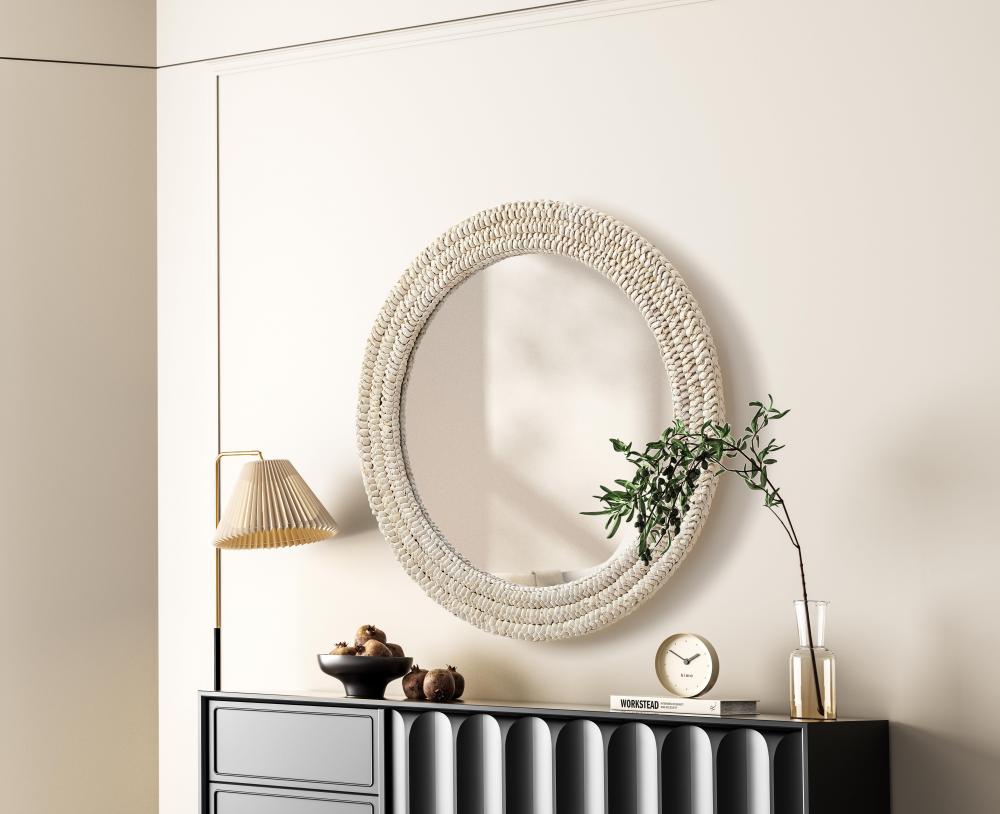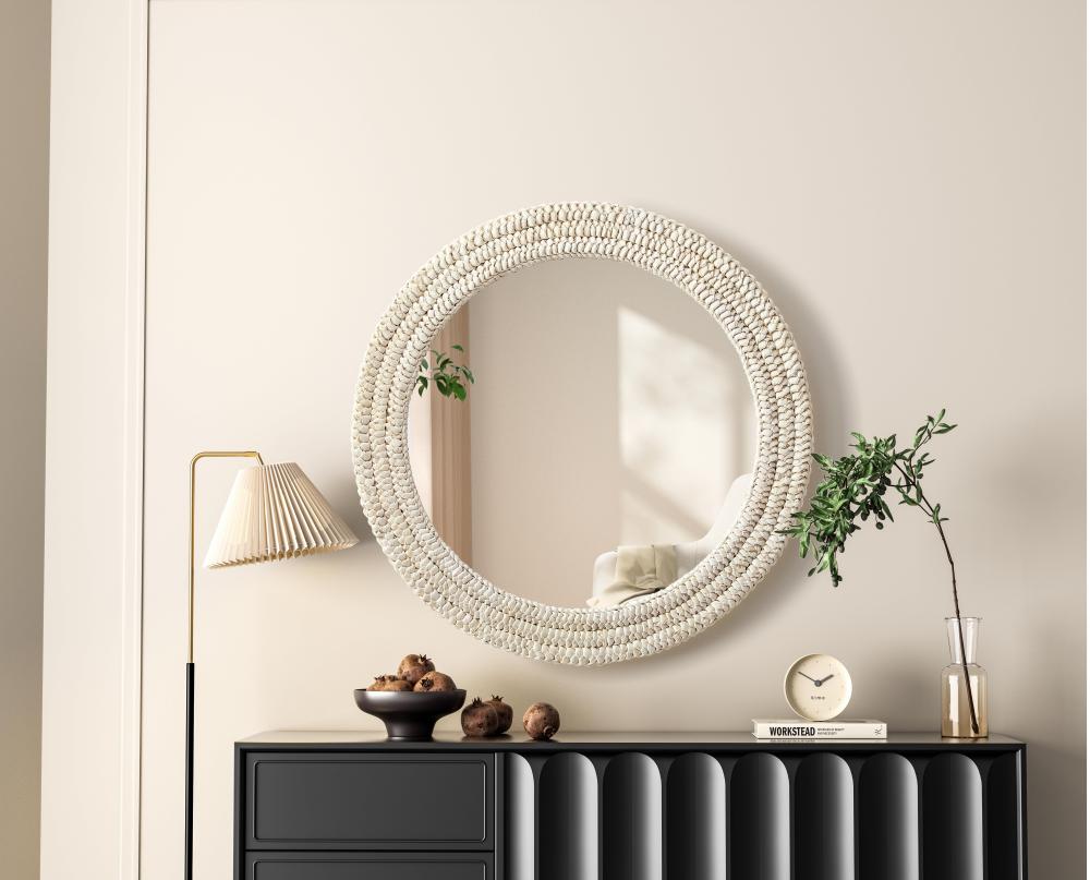 Made from MDF, cornhusk, and high-quality mirror, ensuring lasting durability and style.