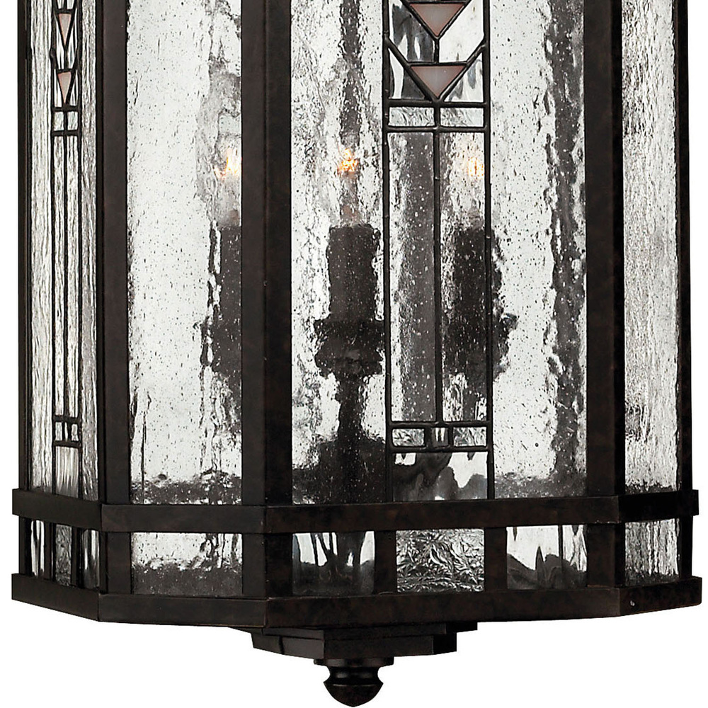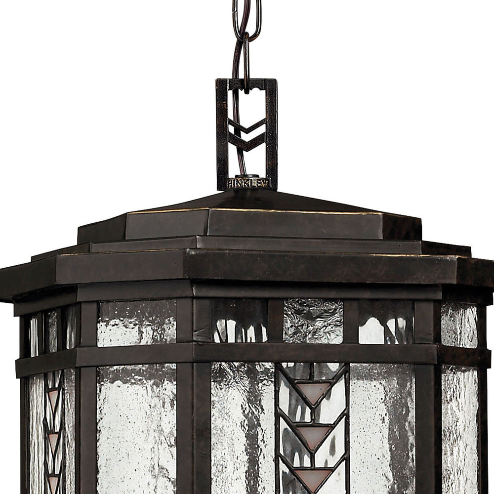 Tahoe makes a classic Arts & Crafts design statement in a cast aluminum construction with panels of clear seedy water glass and copper foil art glass accents.