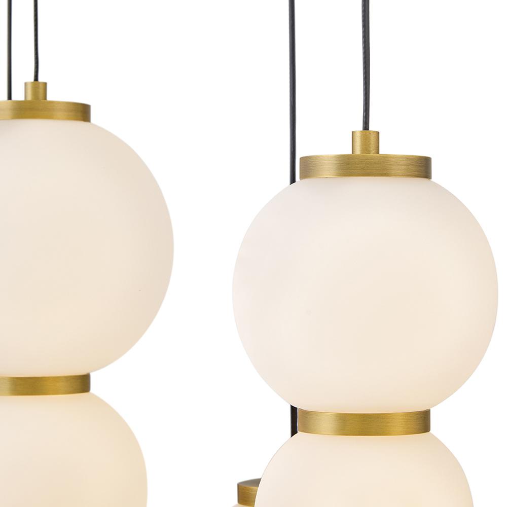 Inspired by the enduring allure of pearl jewelry, Trigo’s softly cascading silhouette makes a dramatic yet elegant statement. Glowing etched opal glass globes of varying sizes create a visual rhythm and organic flow that echo the natural imperfections and unique beauty found in genuine pearls. Differences between each globe add depth and movement, combining classic beauty with modern coastal design and offering a harmonious blend of tradition and innovation.