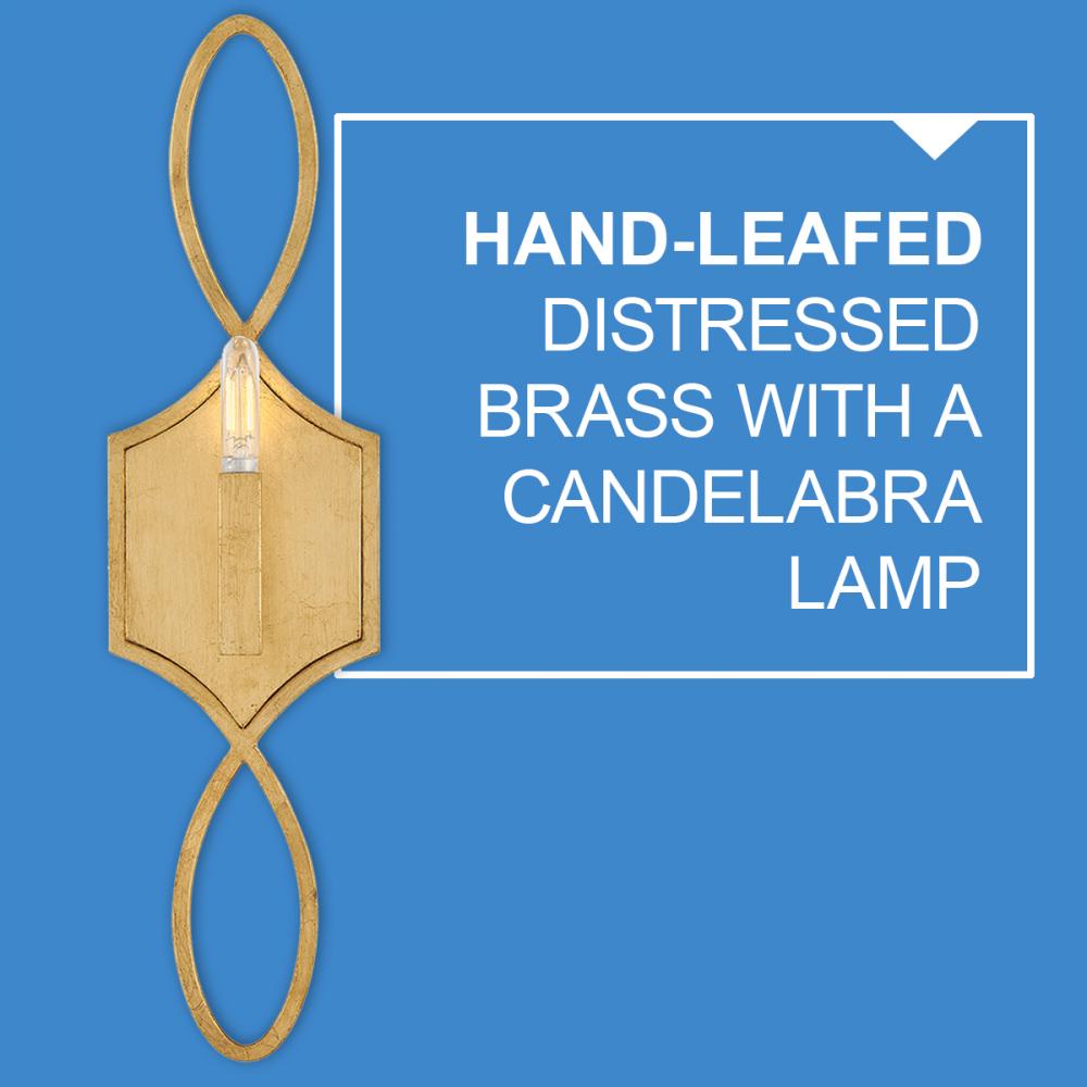 Leona’s decorative scrollwork is crafted from a gently curved, smoothly welded frame finished in hand-leafed Distressed Brass. Clean shapes complemented by exposed candelabra lamps create a family of formal fixtures with undeniable charm.