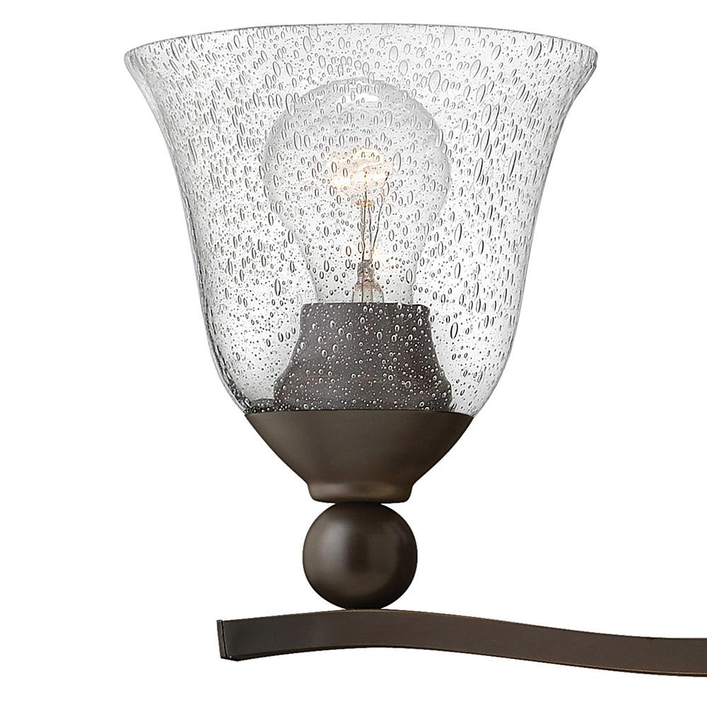 The graceful lines of Bolla create a soft elegance, while heavy cast ball transition details add to its innovative style. The strong proportions of the design contrast with the subtle bell shaped glass, combining both traditional and modern details.