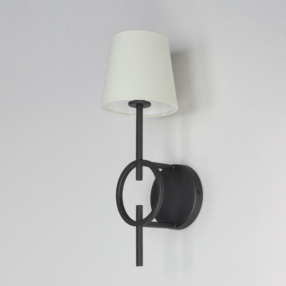 A clean frame with an oversized ring detail is finished in Charcoal Bronze. Featuring oversized Off-White Linen shades on two configurations of pendants, the collection also includes a two-tier chandelier and wall sconce.