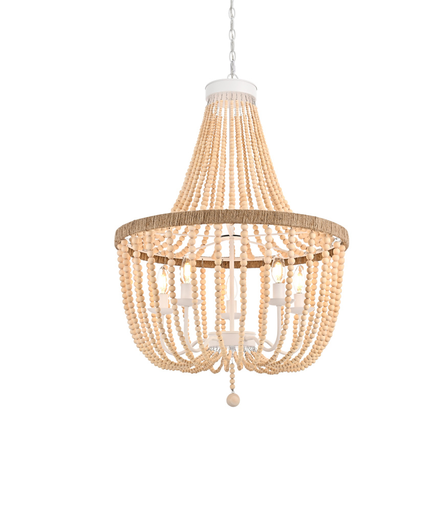 Raw beauty emerges through natural wooden beads and rustic rope detail, bringing organic warmth and authentic character to any room.
