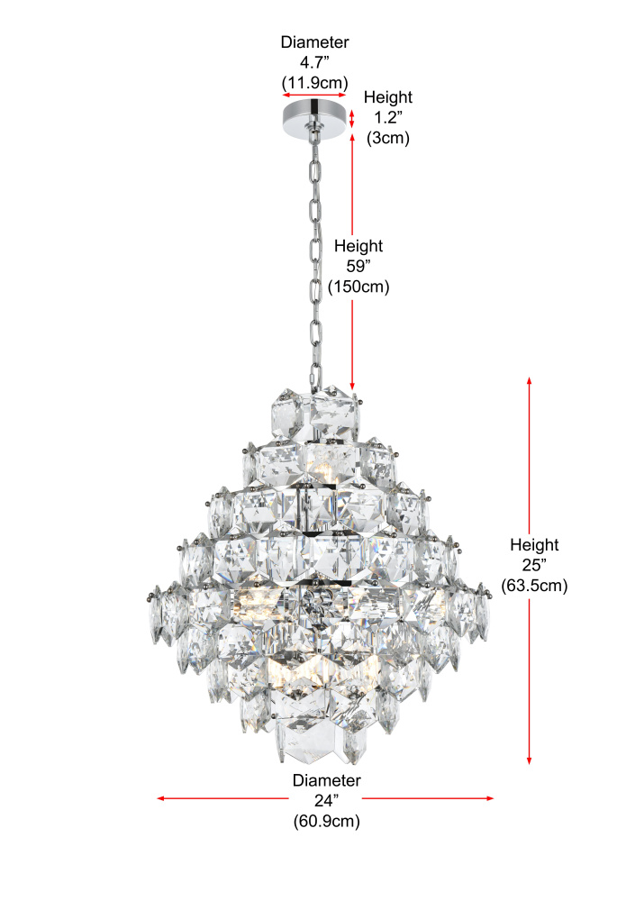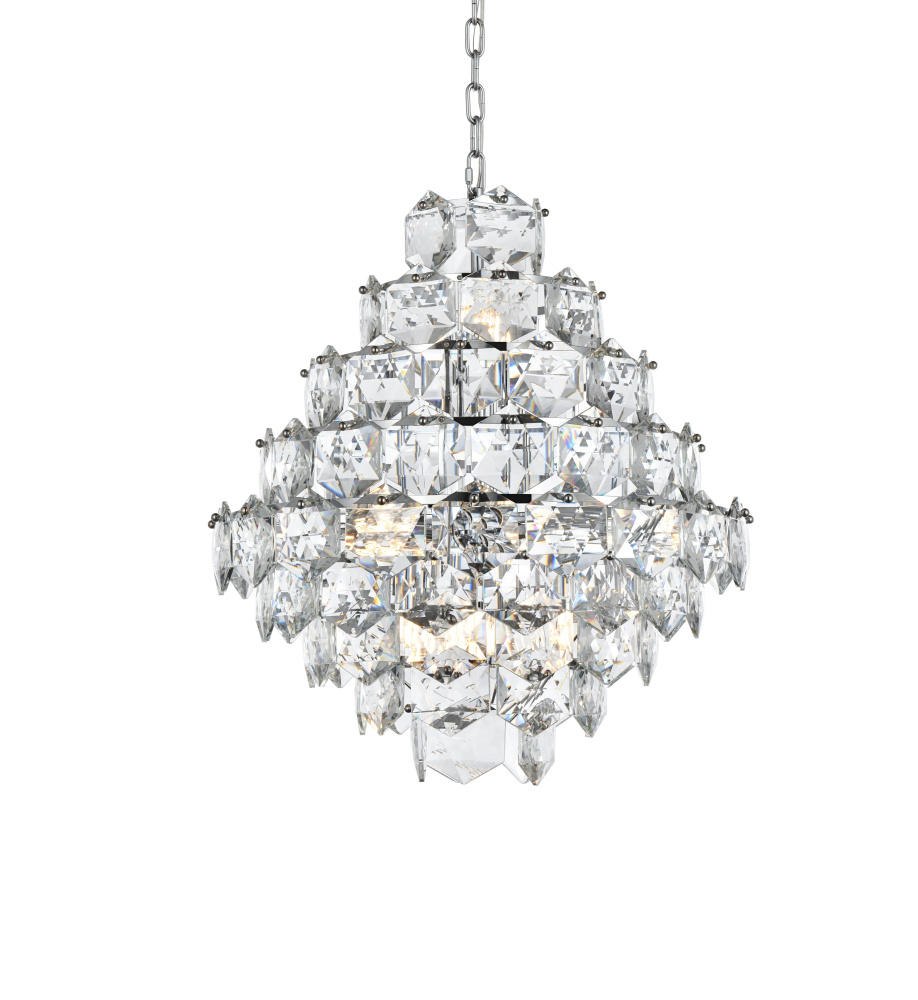 Adorned with six-sided, precision-cut crystals, each tier cascades down to create a radiant play of light and dimension.